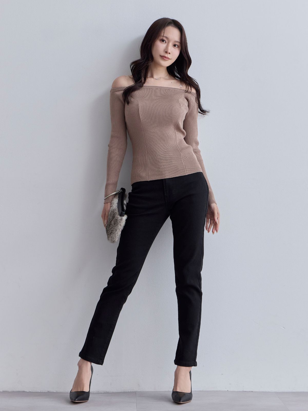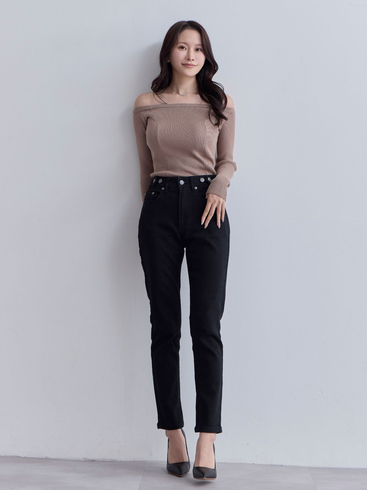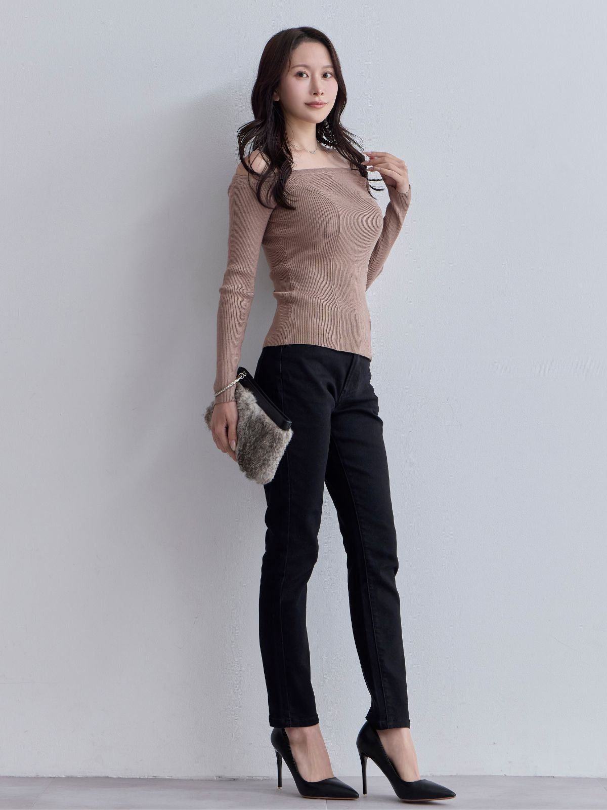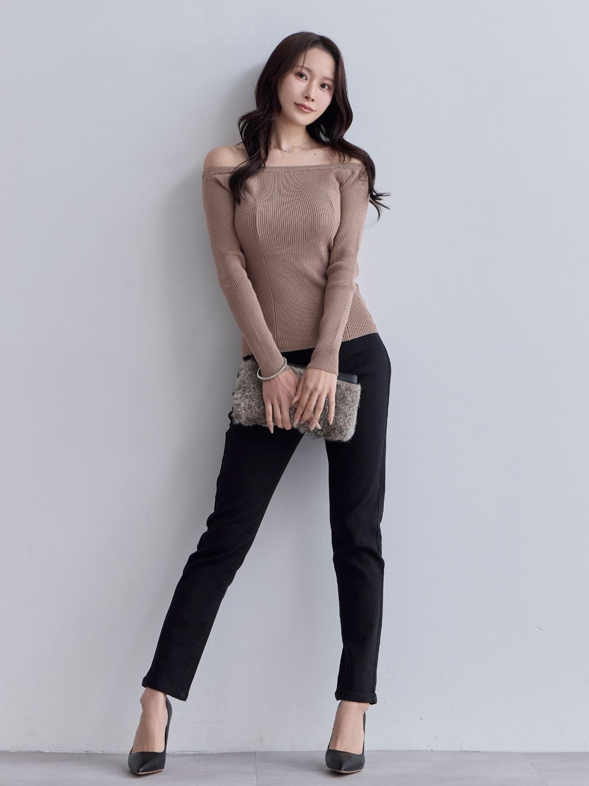 このニットのシリーズは本当に秀逸。黒のニットはこれさえあればいいって感じです。これと黒のタイトスカートでセットアップ風もできるので本当に万能。65を選びましたが、伸びがいいです。