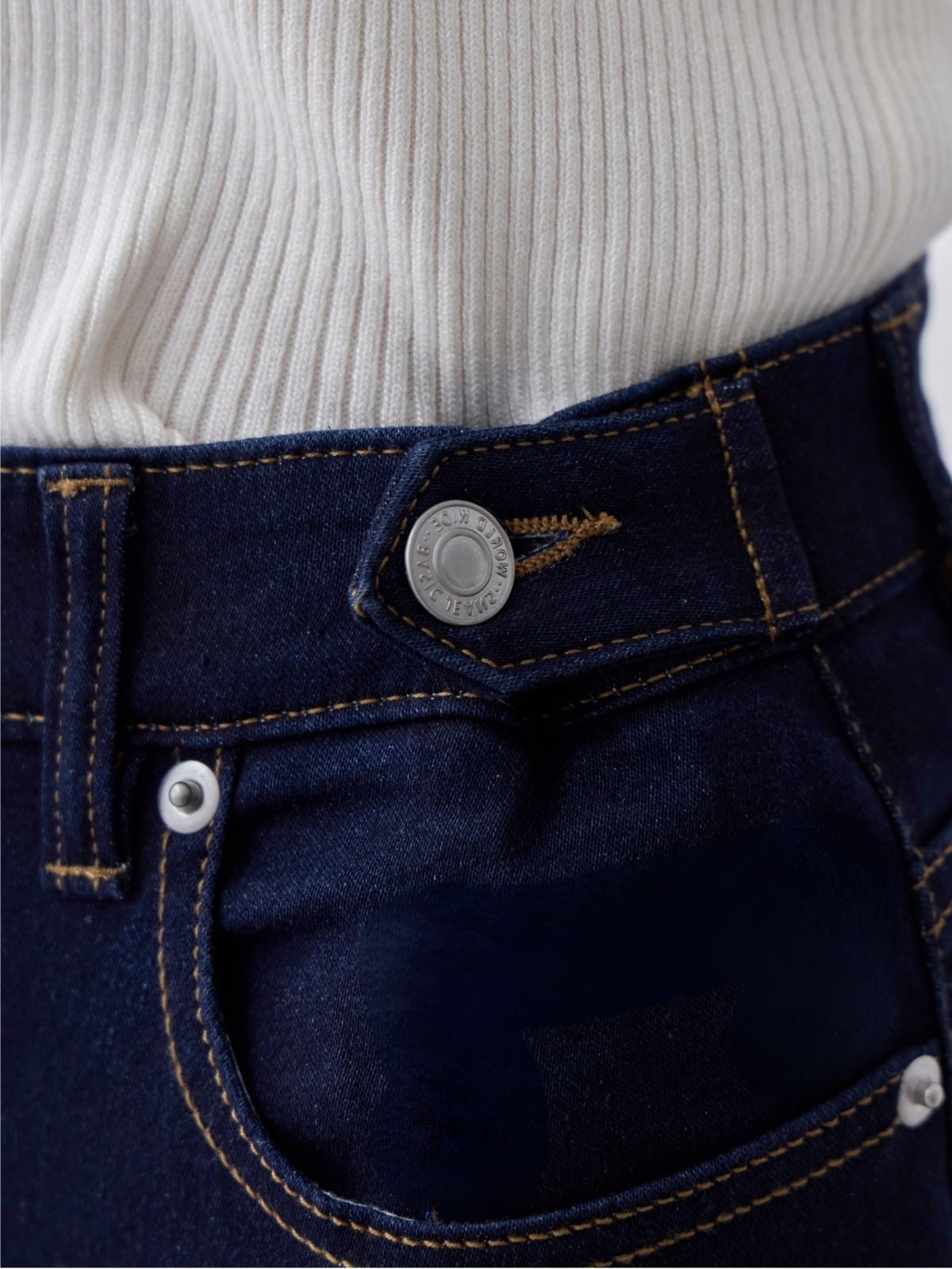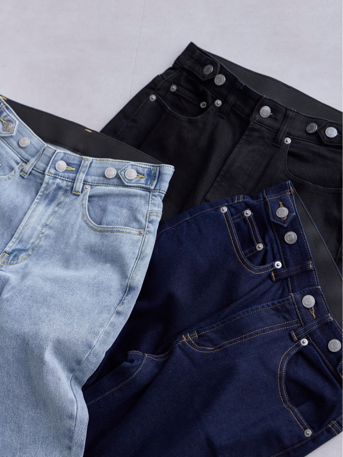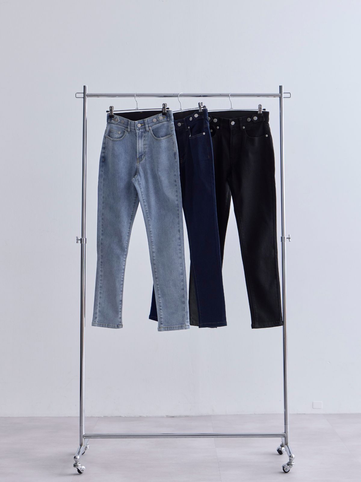 ウエスト調節できる裏微起毛ストレッチスキニーデニム:ケミカルブルー