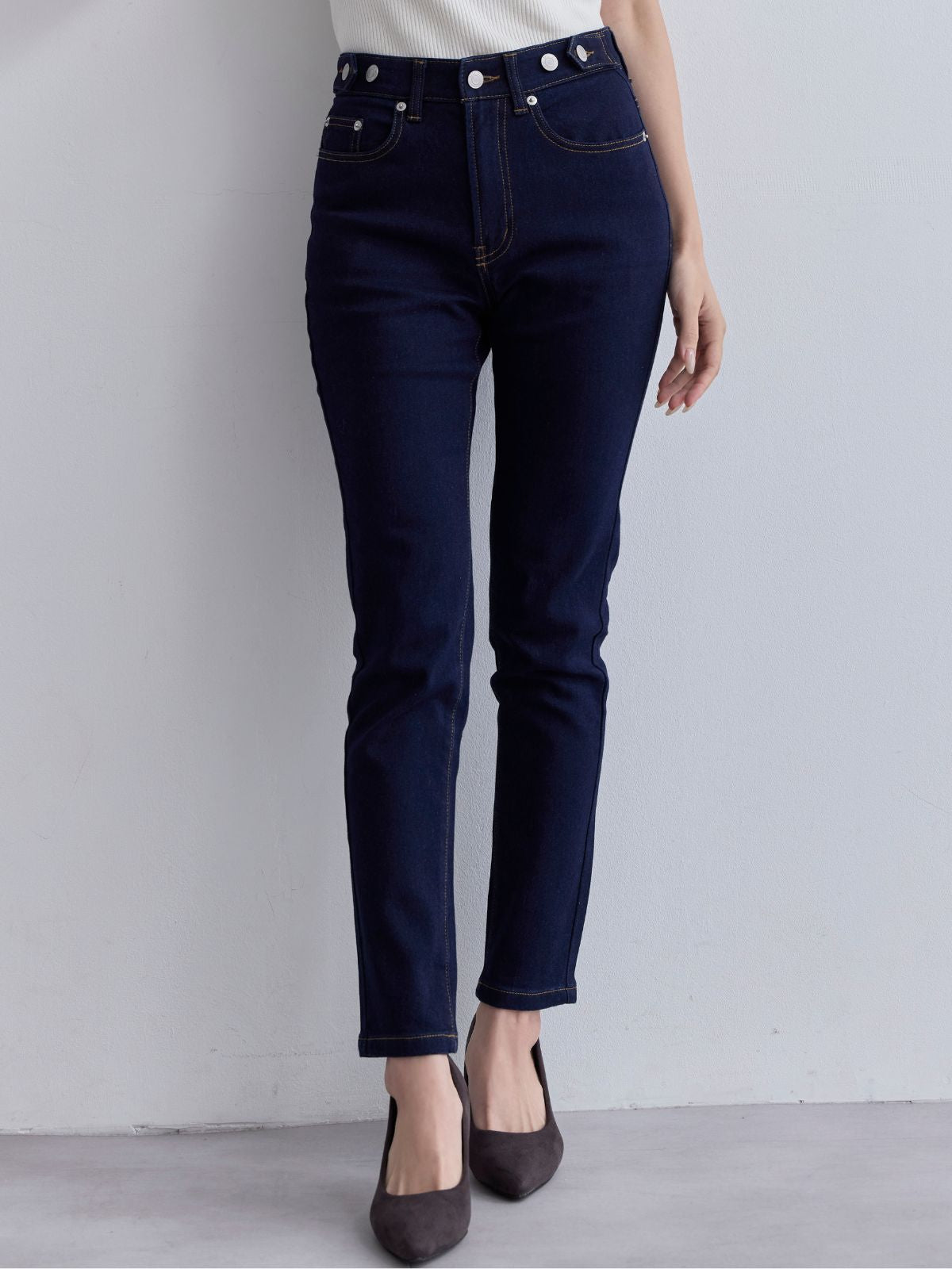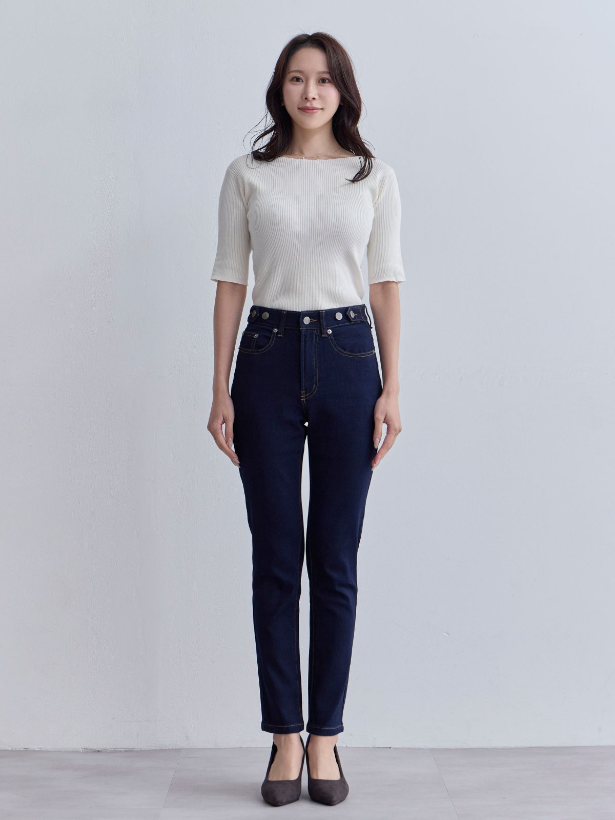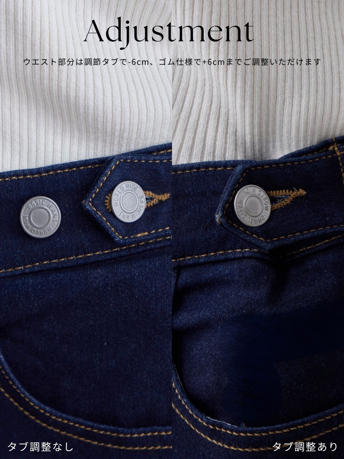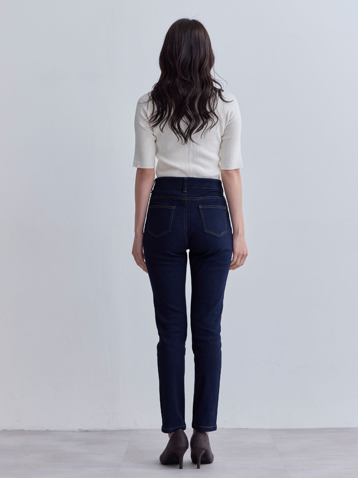 ウエスト調節できる裏微起毛ストレッチスキニーデニム:インディゴ