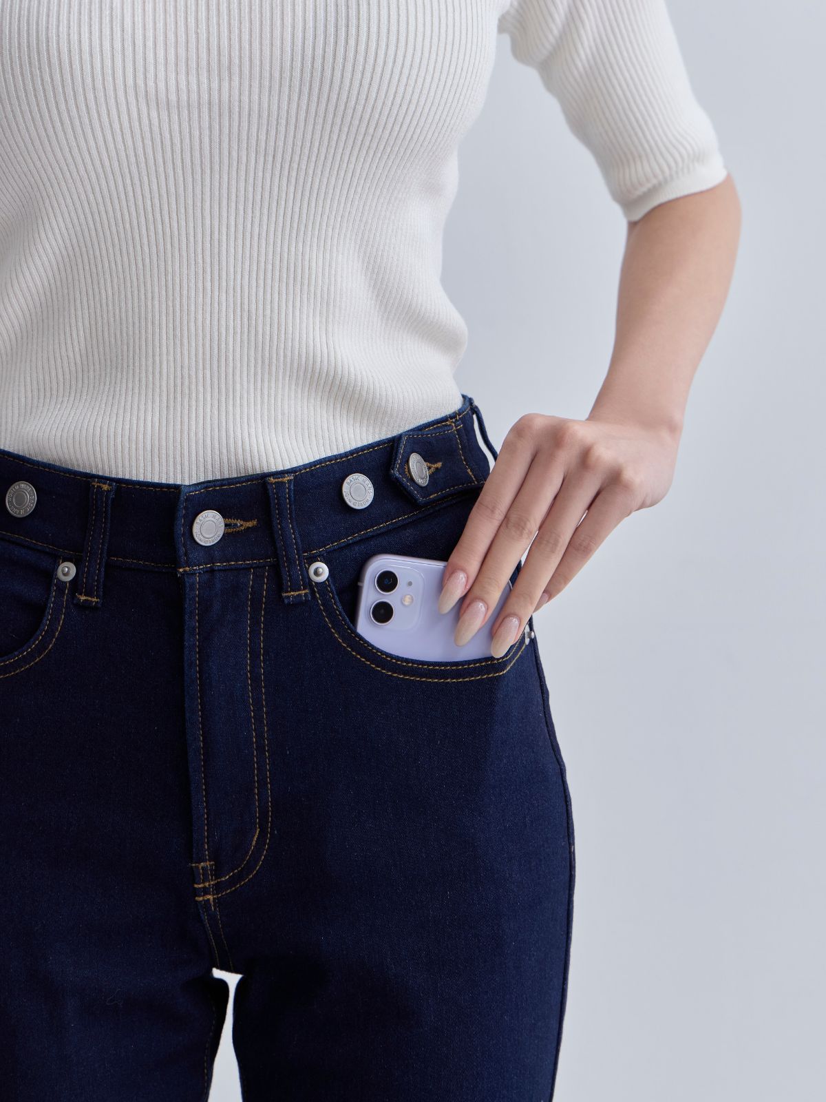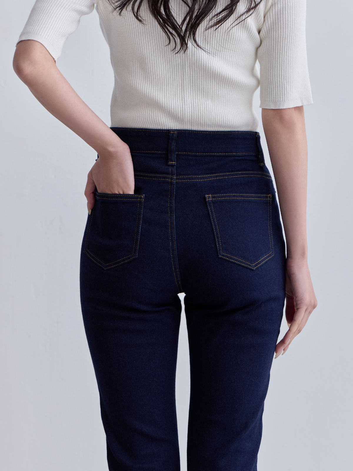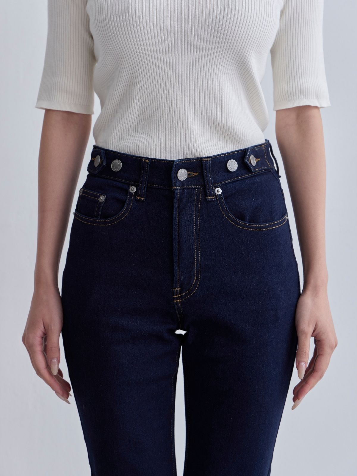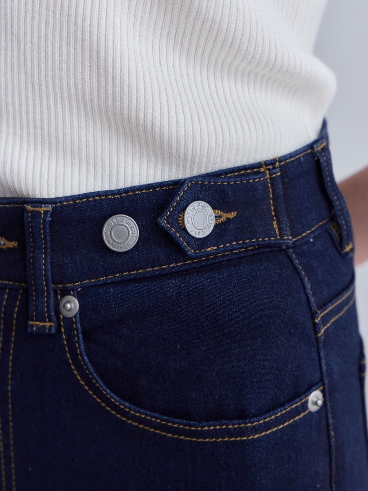 ウエスト調節できる裏微起毛ストレッチスキニーデニム:インディゴ